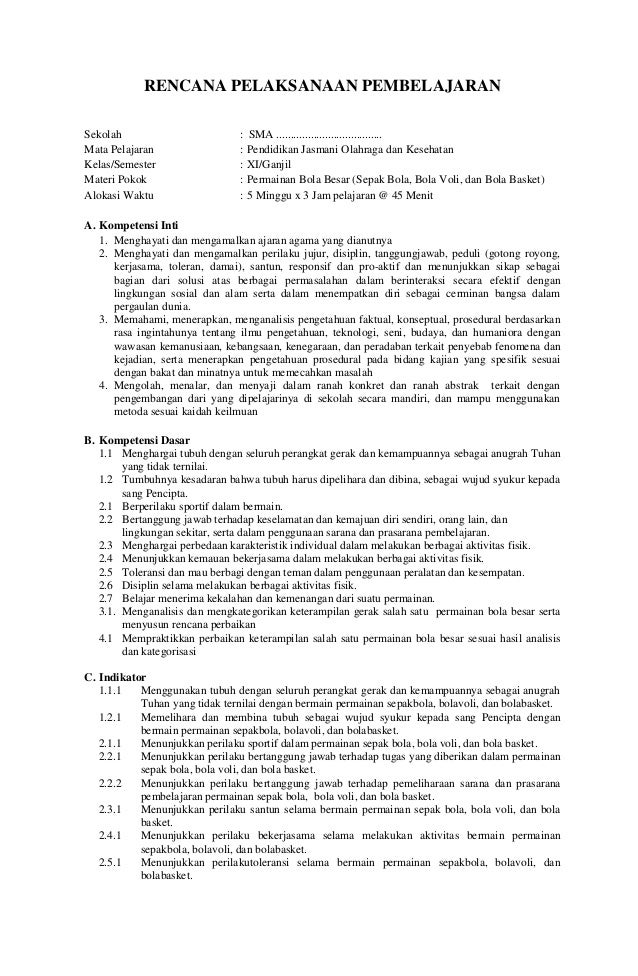 Rpp Penjas Sma Kurikulum 2013 Kls Xi