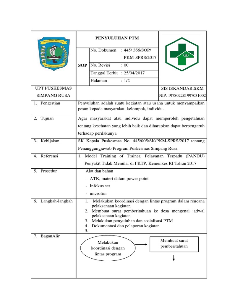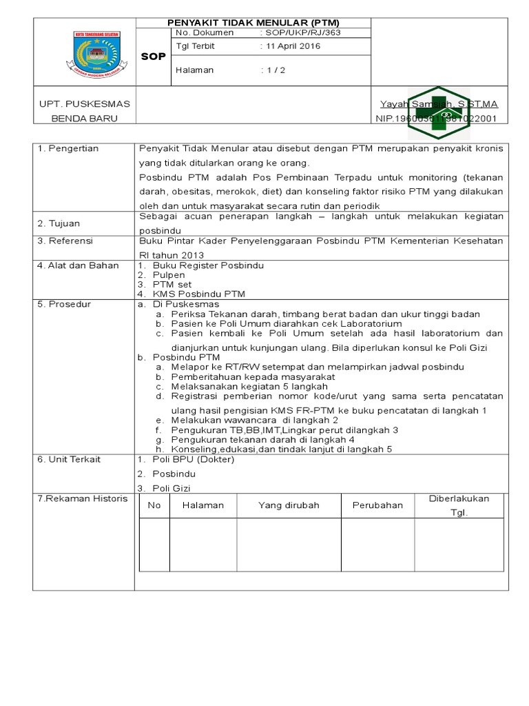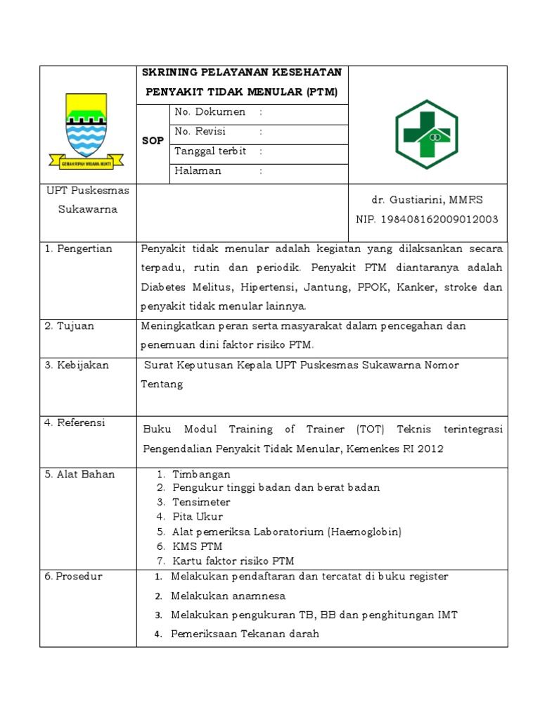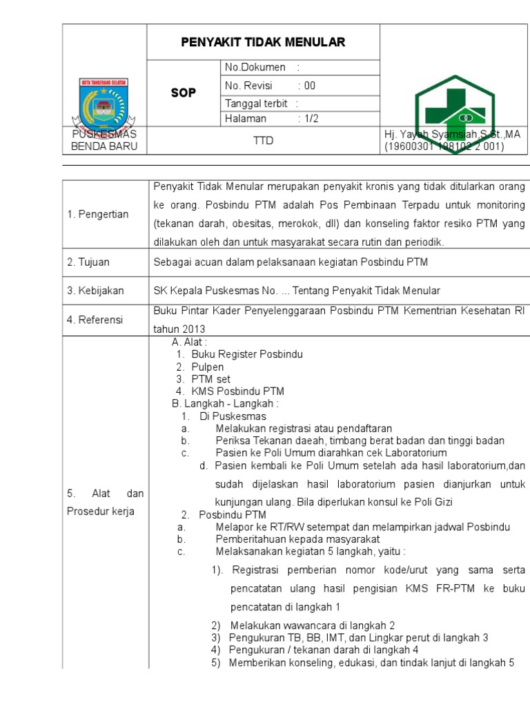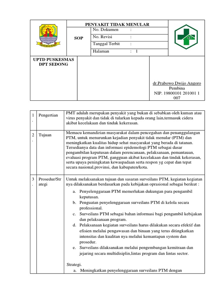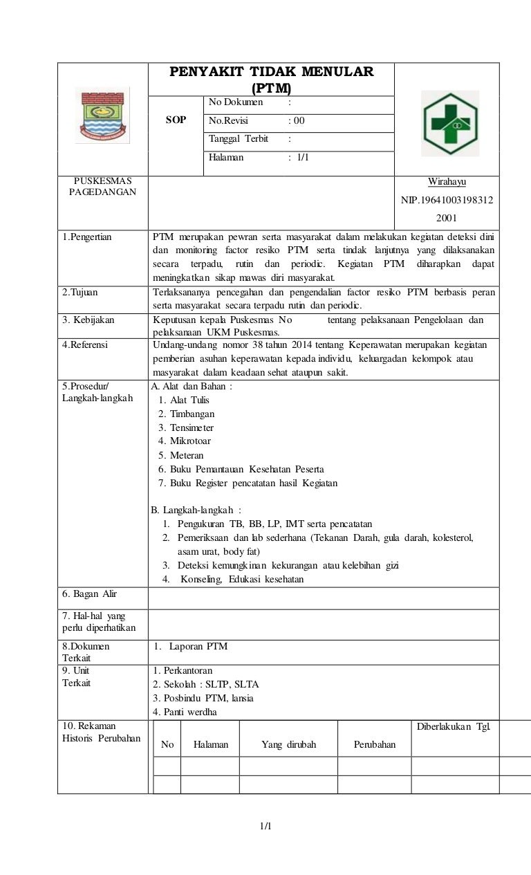 Pencegahan Penyakit Tidak Menular Penyakit Tidak Menular PTM merupakan penyakit yang bukan disebabkan oleh proses infeksi tidak infeksius. Contoh sop penyakit tidak menular. SOP SE Kesehatan Matra.