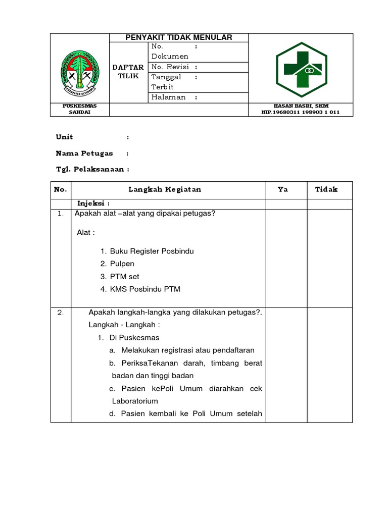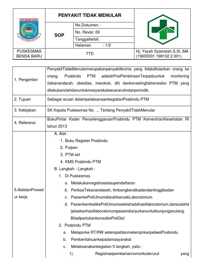 Inilah sop penyakit tidak menular dan hal lain yang berhubungan erat dengan sop penyakit tidak menular serta aspek K3 secara umum di Indonesia. SOP SE Kajian Faktor Risiko Penyakit TB. Penyakit tidak menular selanjutnya adalah osteoporosis yakni penyakit yang berkaitan erat dengan kondisi tulang.