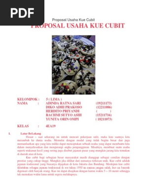 Kue Cubit Dien Anindia 125020300111027 Maria F. Proposal Bisnis Kue Cubit posted. Usaha yang kami jalankan yaitu produk Kue Cubit adalah produk makanan kecil cepat saji jadi produk tersebut merupakan produk yang di buat sendiri dengan menawarkan berbagai macam rasa.